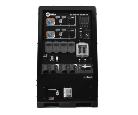 El soldador diesel T4F / convertidor de potencia auxiliar / compresor de aire más potente de la industria. El Big Blue 800 Duo Air Pak ofrece una salida robusta para soldadura y creación de energía, y es ideal para aplicaciones de doble operador en sitios de trabajo intensivos en mano de obra o sitios de trabajo con espacio limitado.